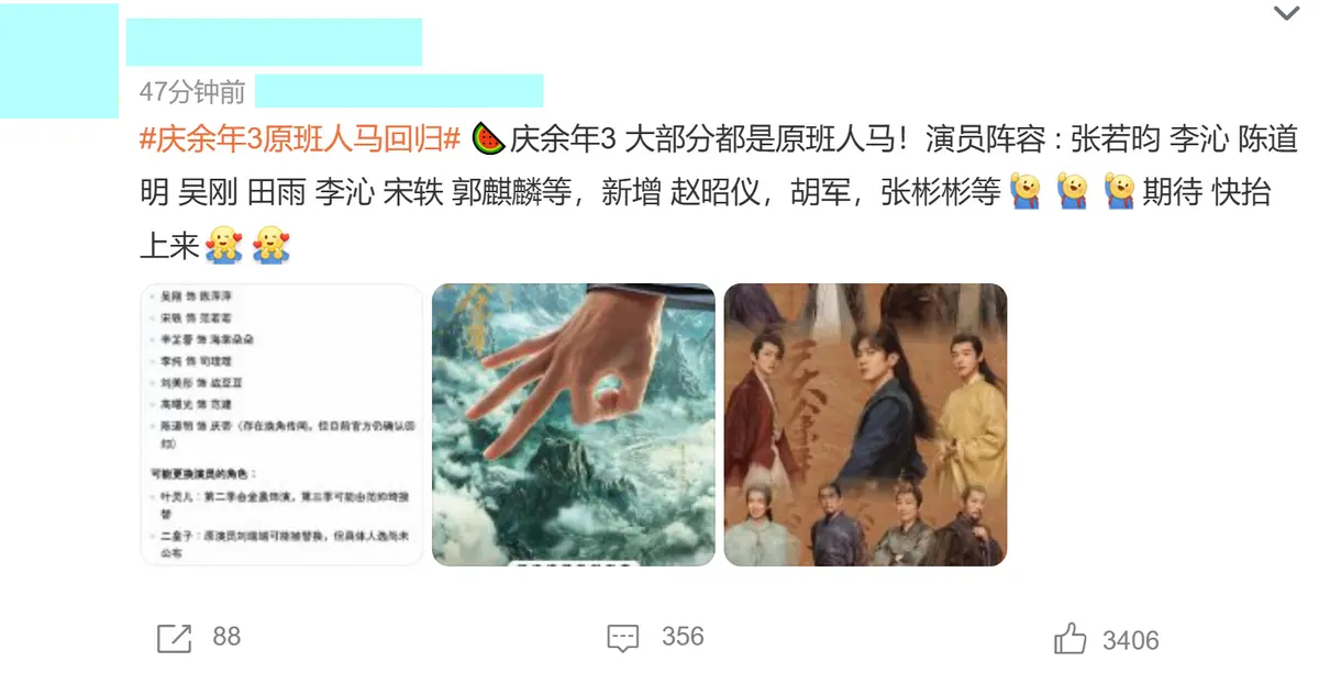 与此同时,还有正儿八经的国剧剧王传来了新的动静——《庆余年3》。